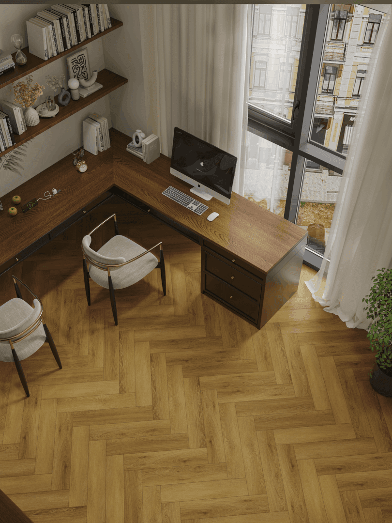 NORLAND PARQUET S 1055-9 Seliger демонстрирует богатый темно-коричневый тон, привносящий в интерьер ноты зрелости и уверенности. Уникальная текстура древесины удачно подчеркнута полуматовой фактурой, а идеально подобранное тиснение подчеркивает индивидуальность и благородство фрагментов коллекции.